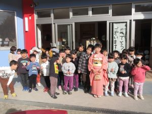 七草のお詣りをした後に園にも見せに来てくれましたよ。