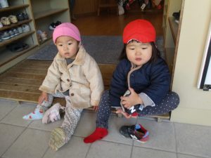 もも組さん、お外にいくよ~ 靴も自分で・・・